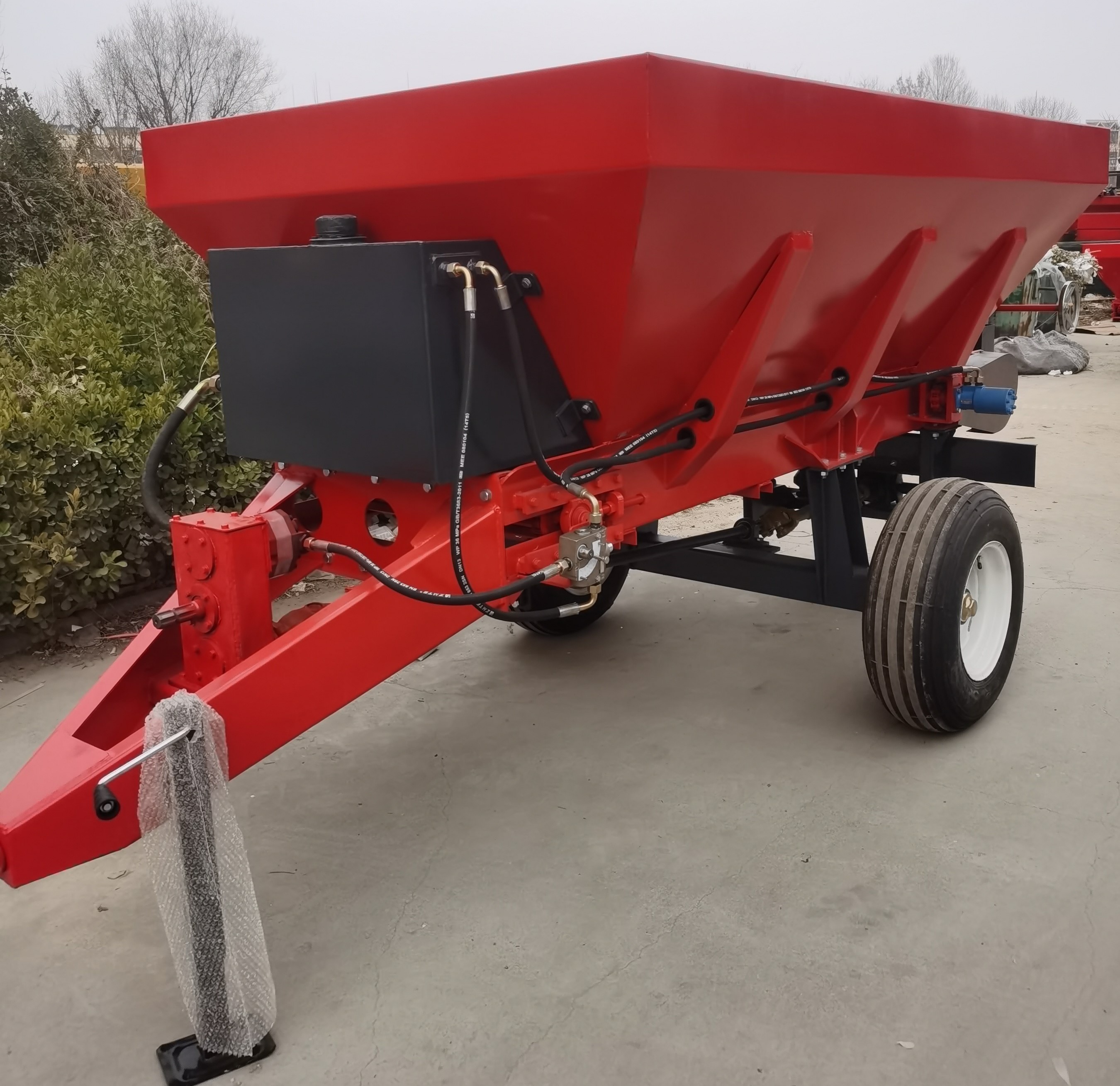 牽引式撒肥車,產(chǎn)品有立式螺旋拋灑、離心式雙圓盤拋灑(2m3-16m3)等10多種型號(hào),作業(yè)寬度可在10-20米范圍內(nèi)任意調(diào)節(jié)。